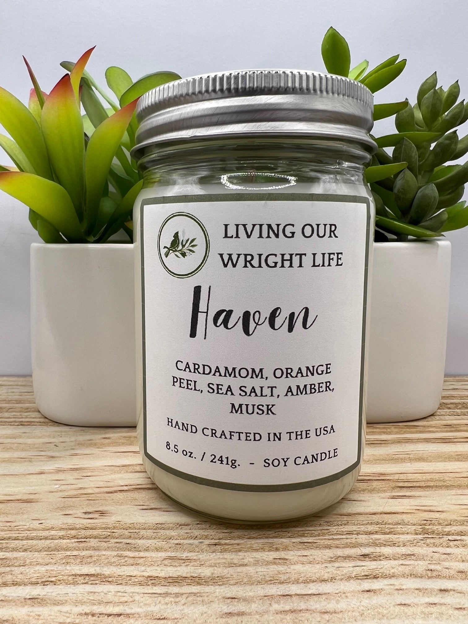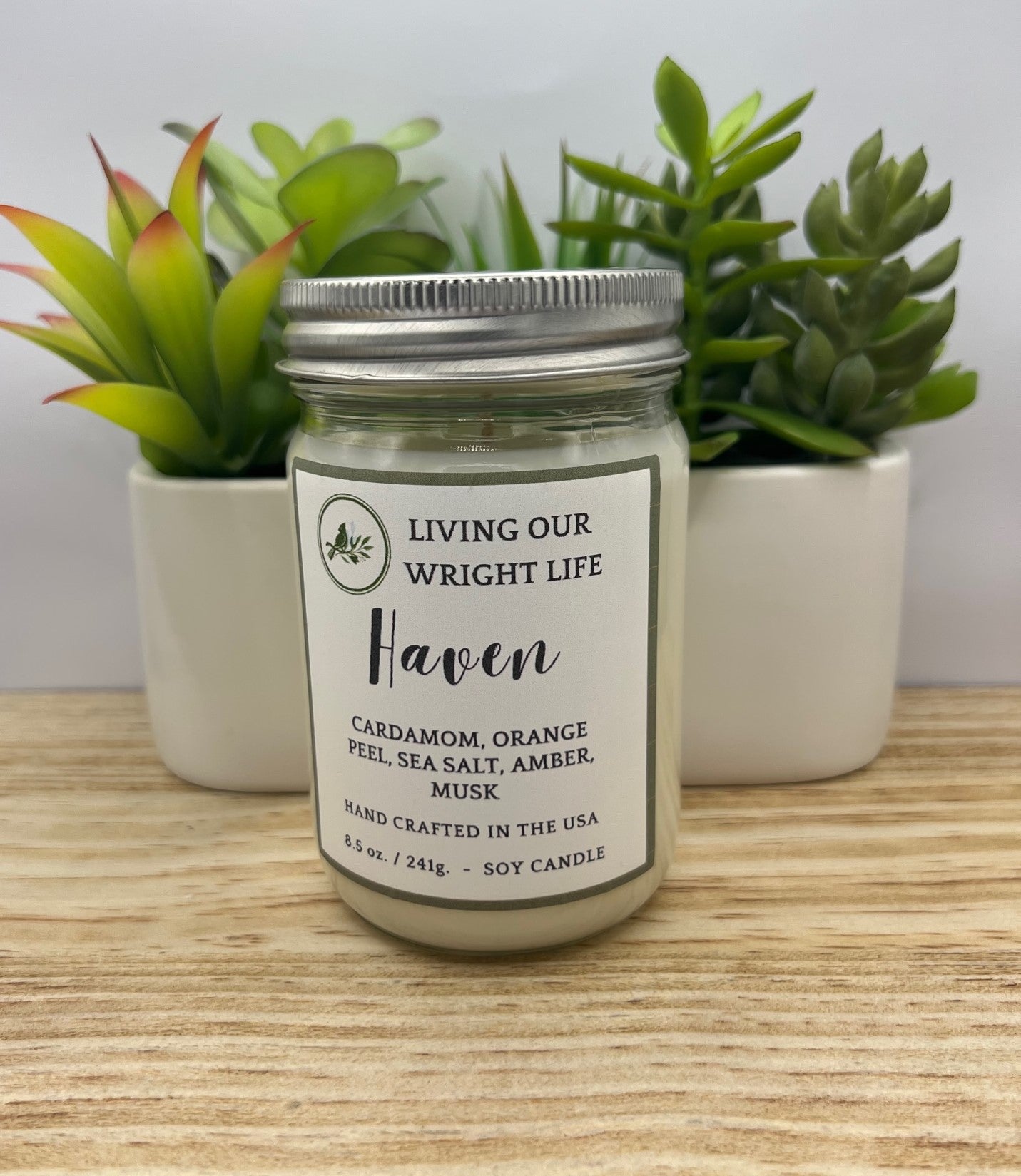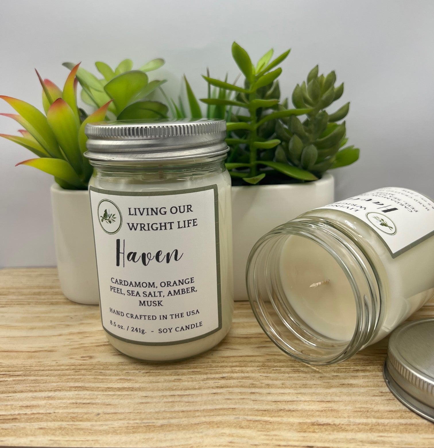 PRODUCT DESCRIPTION: This purchase is for one 12oz glass candle container – 2.91" W x 4.75" H; with 8.5oz. (241g.) net weight of fragrance soy wax.